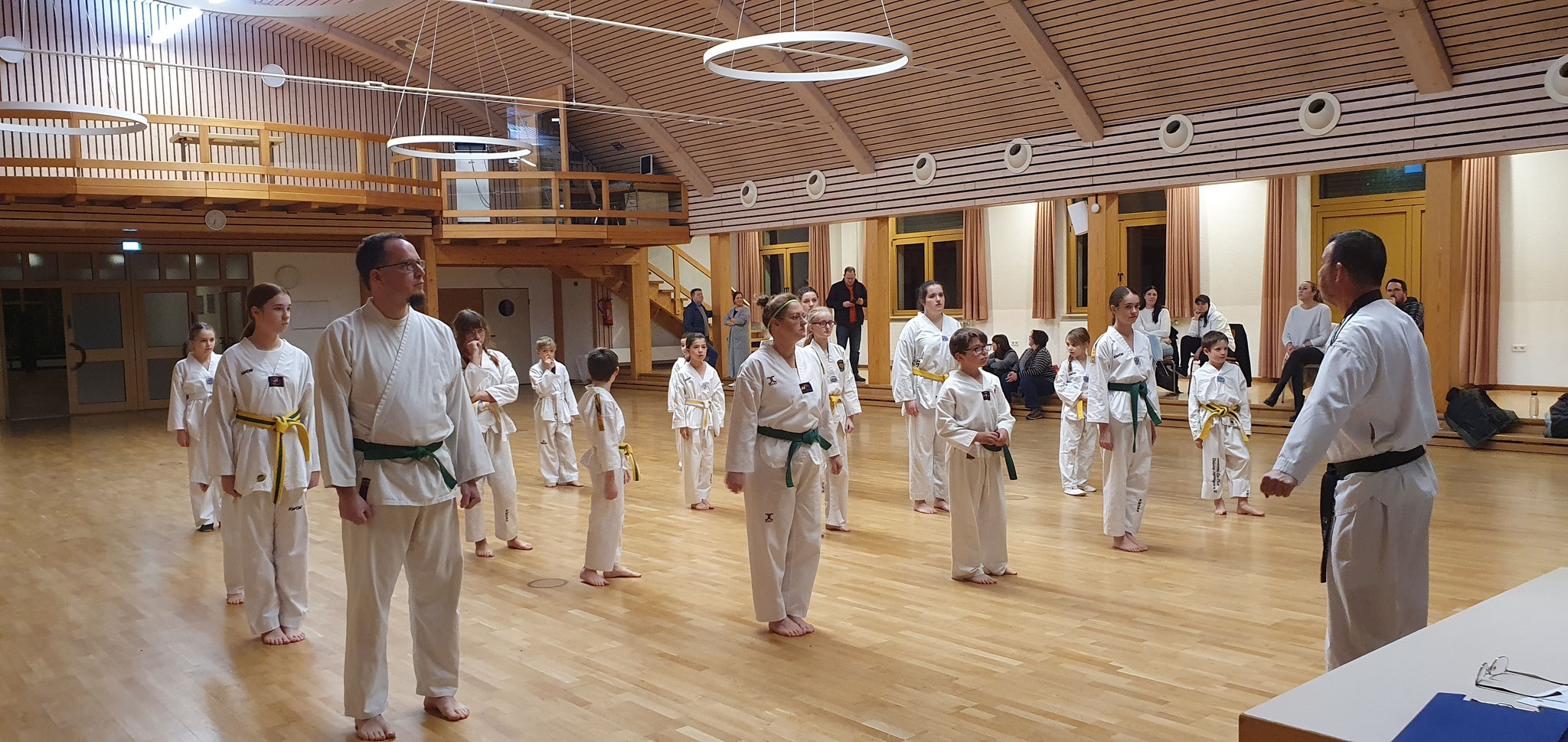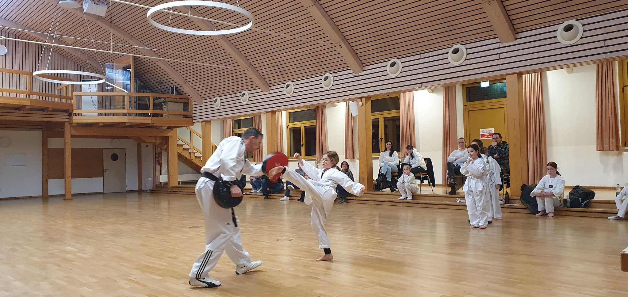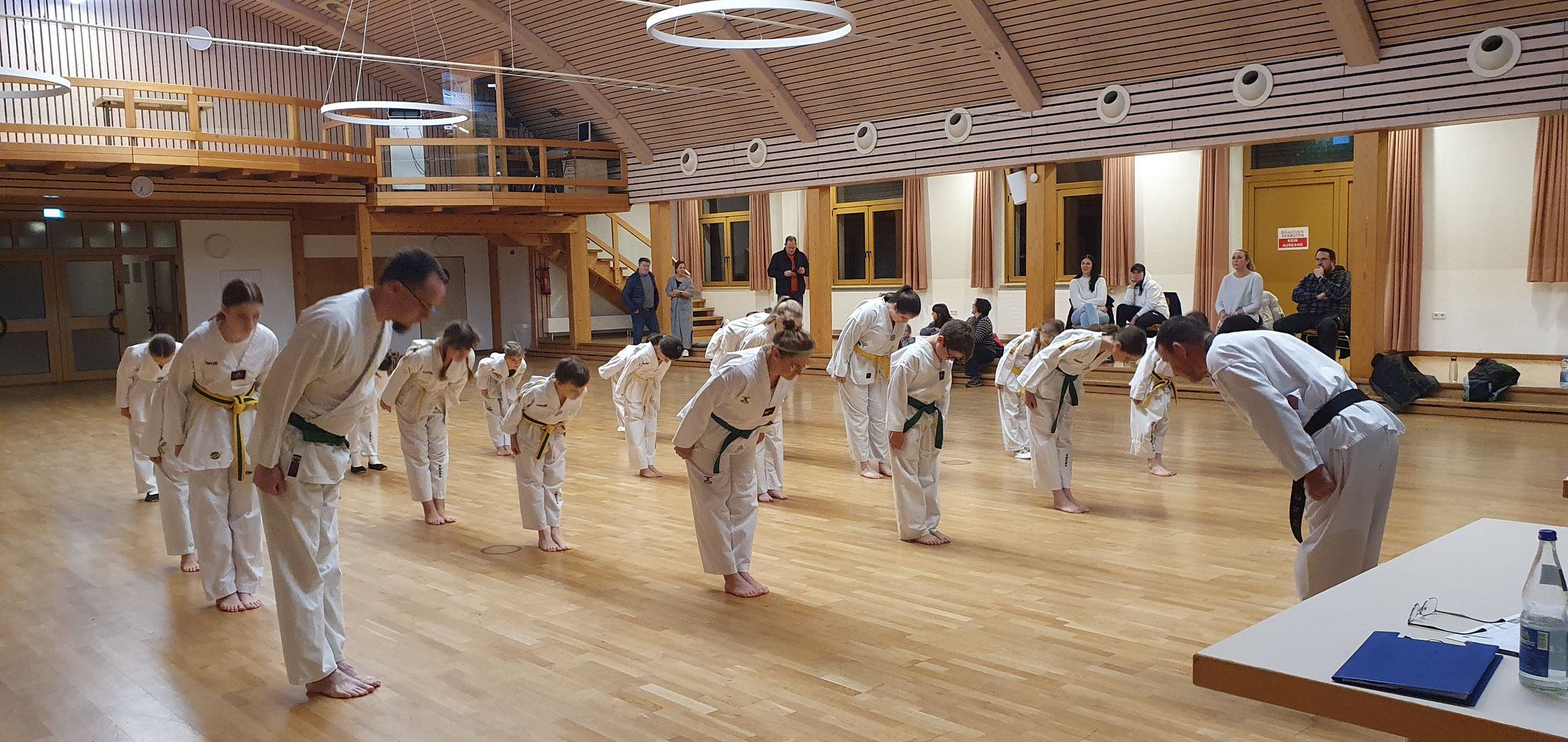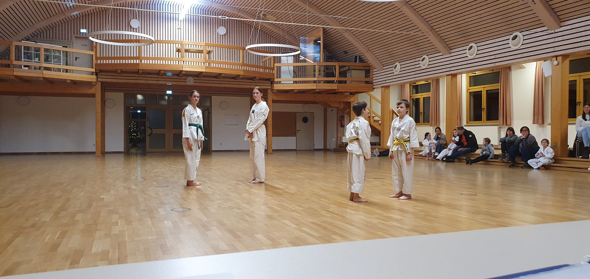 Die Prüflinge zum 9. Kup. durften als erste das Gelernte unter Beweis stellen und sich vor den zufriedenen Eltern präsentieren. Wir freuen uns, dass auch das Interesse bei den Eltern so groß ist und reichlich Zuschauer bei der Prüfung anwesend waren.