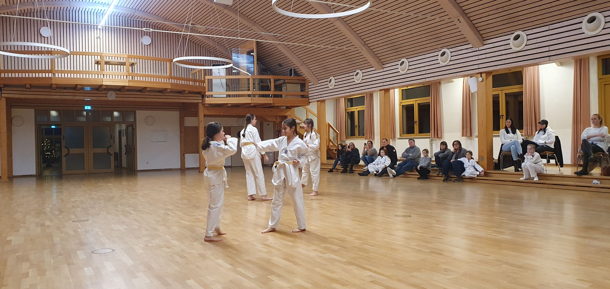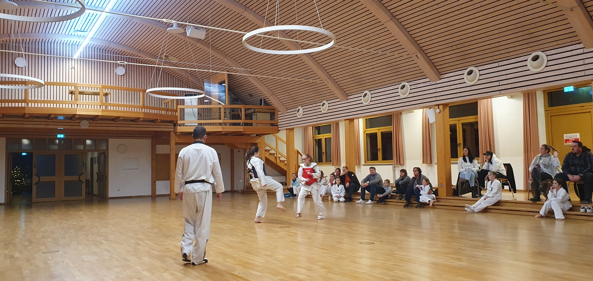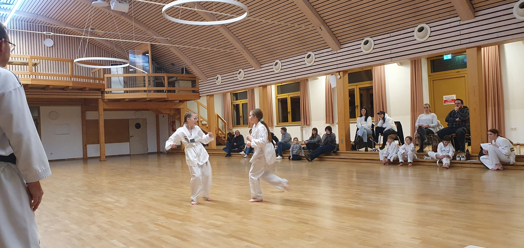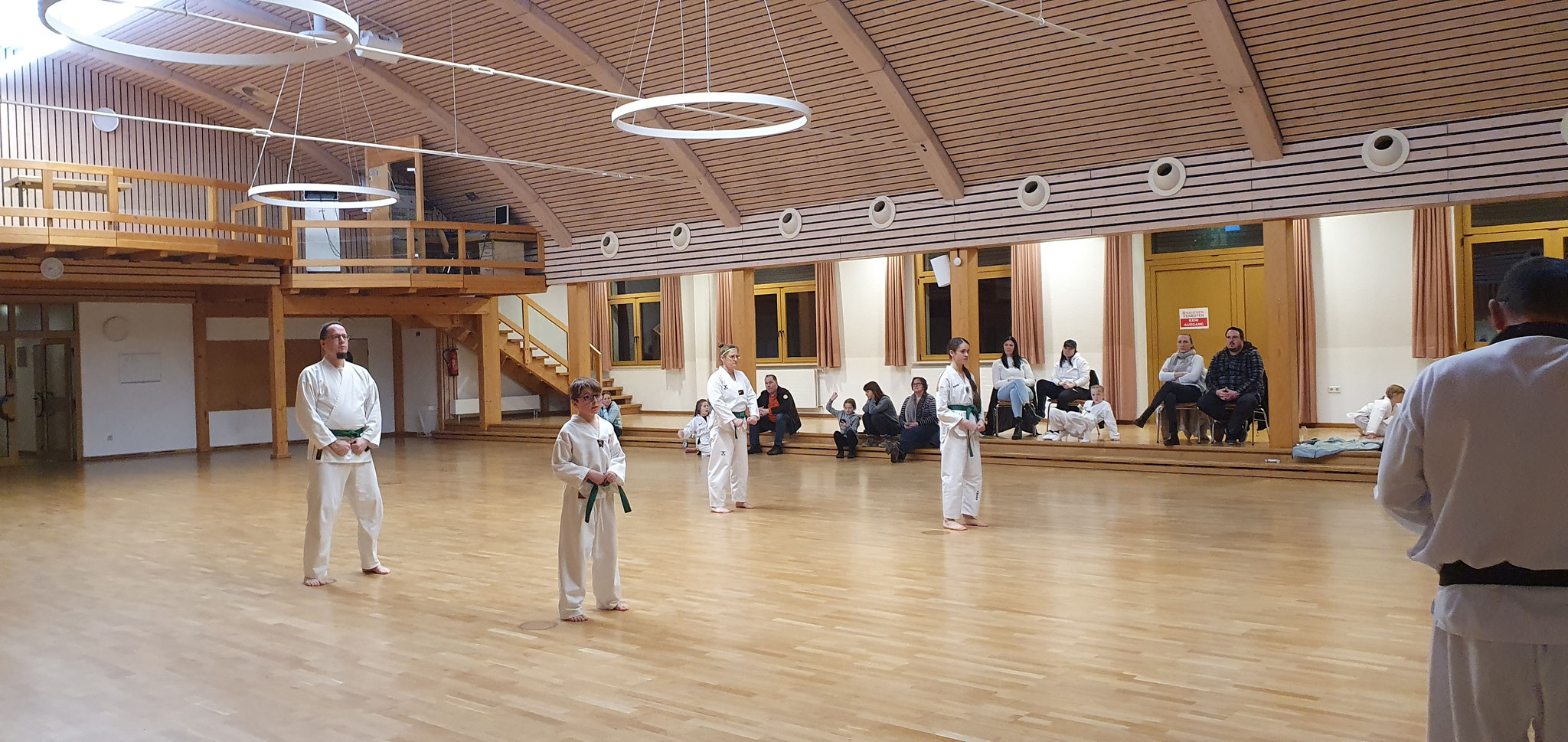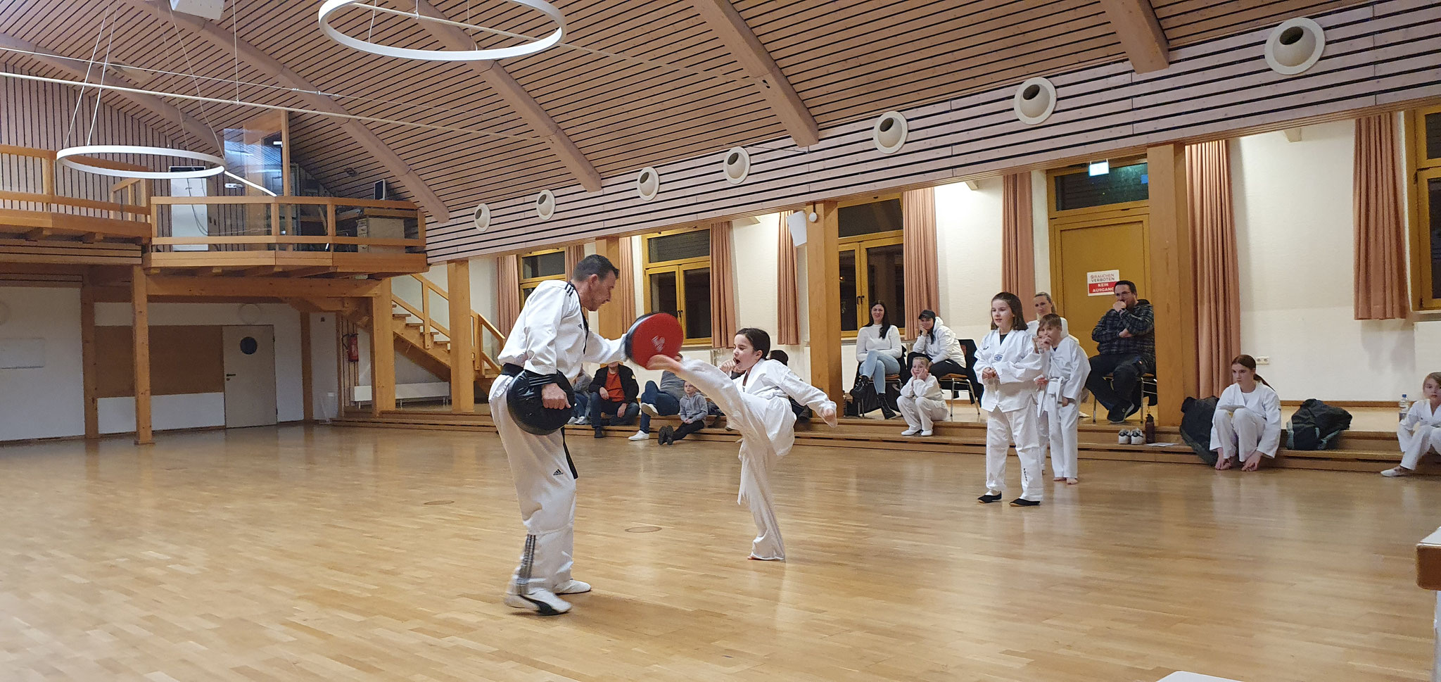 Die Prüflinge zum 9. Kup. durften als erste das Gelernte unter Beweis stellen und sich vor den zufriedenen Eltern präsentieren. Wir freuen uns, dass auch das Interesse bei den Eltern so groß ist und reichlich Zuschauer bei der Prüfung anwesend waren.