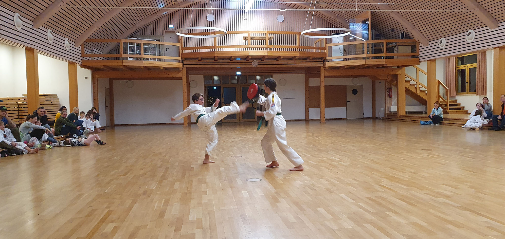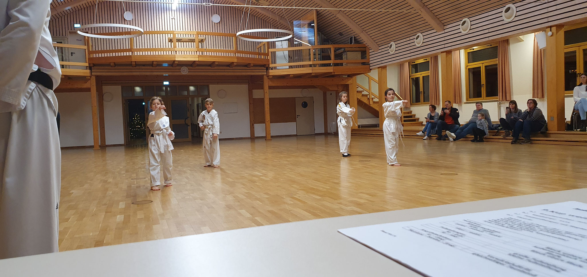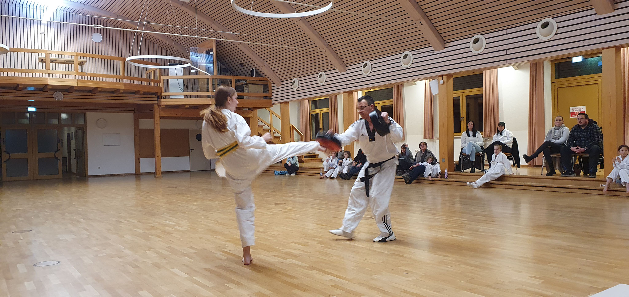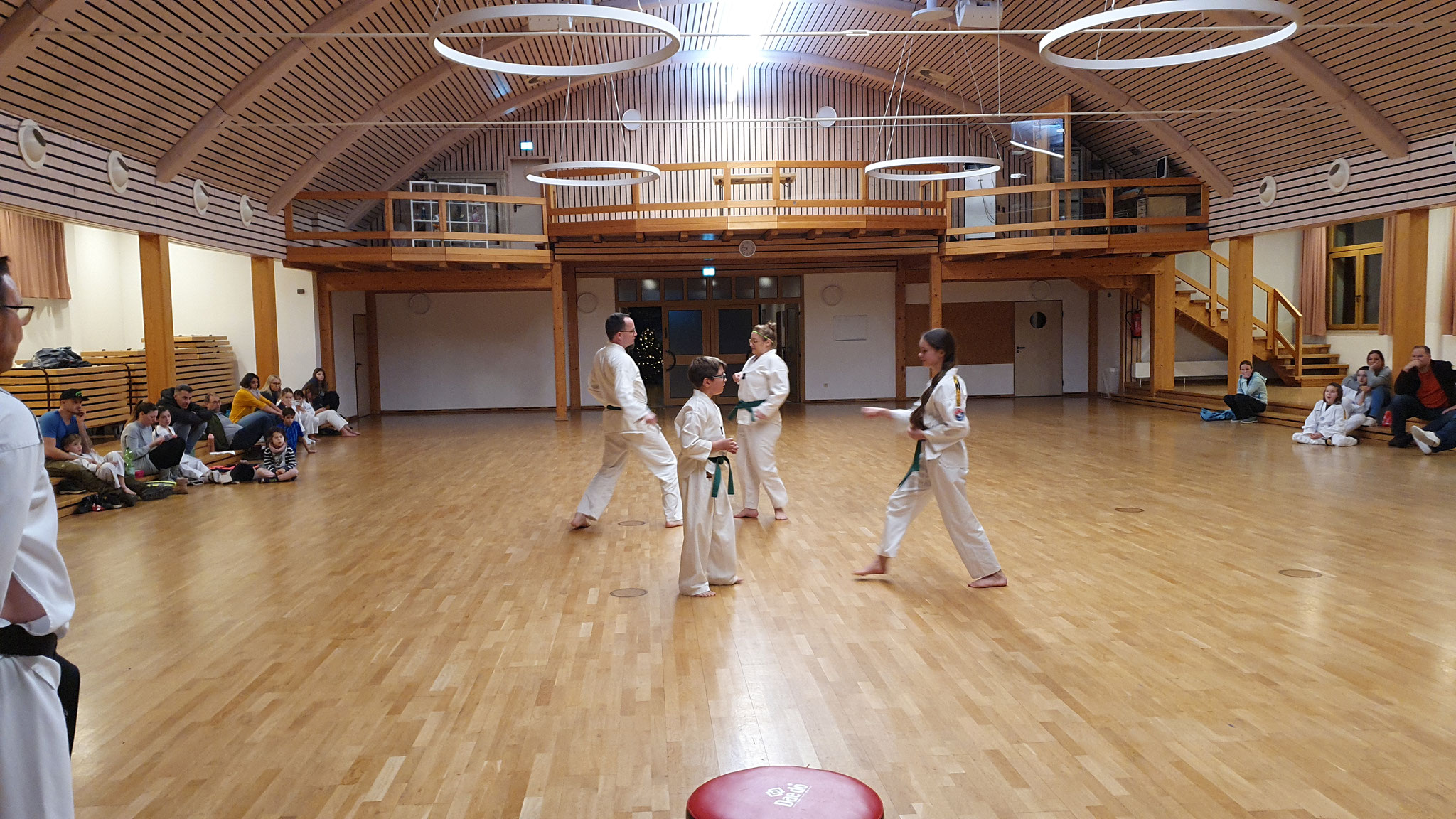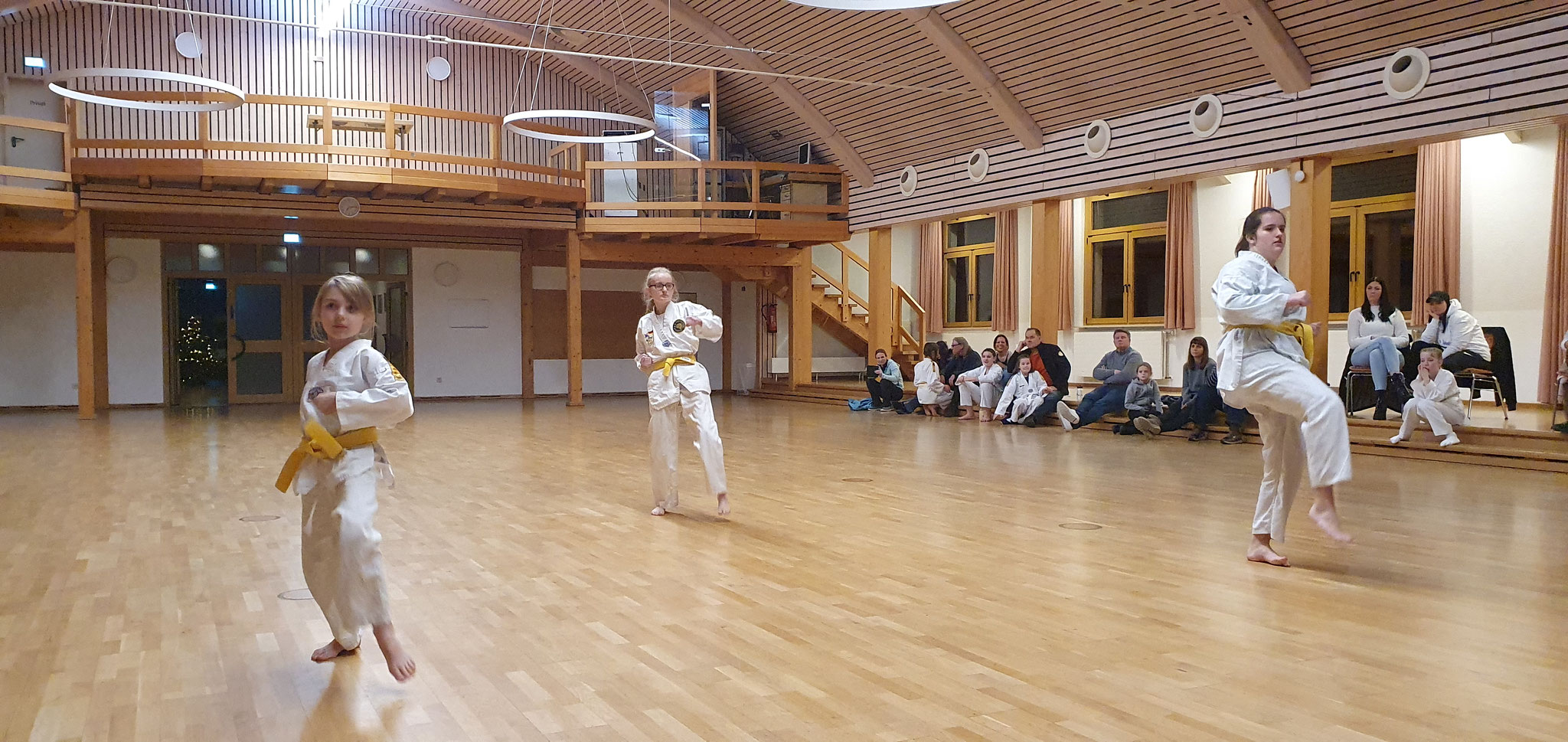 Die Prüflinge zum 9. Kup. durften als erste das Gelernte unter Beweis stellen und sich vor den zufriedenen Eltern präsentieren. Wir freuen uns, dass auch das Interesse bei den Eltern so groß ist und reichlich Zuschauer bei der Prüfung anwesend waren.
