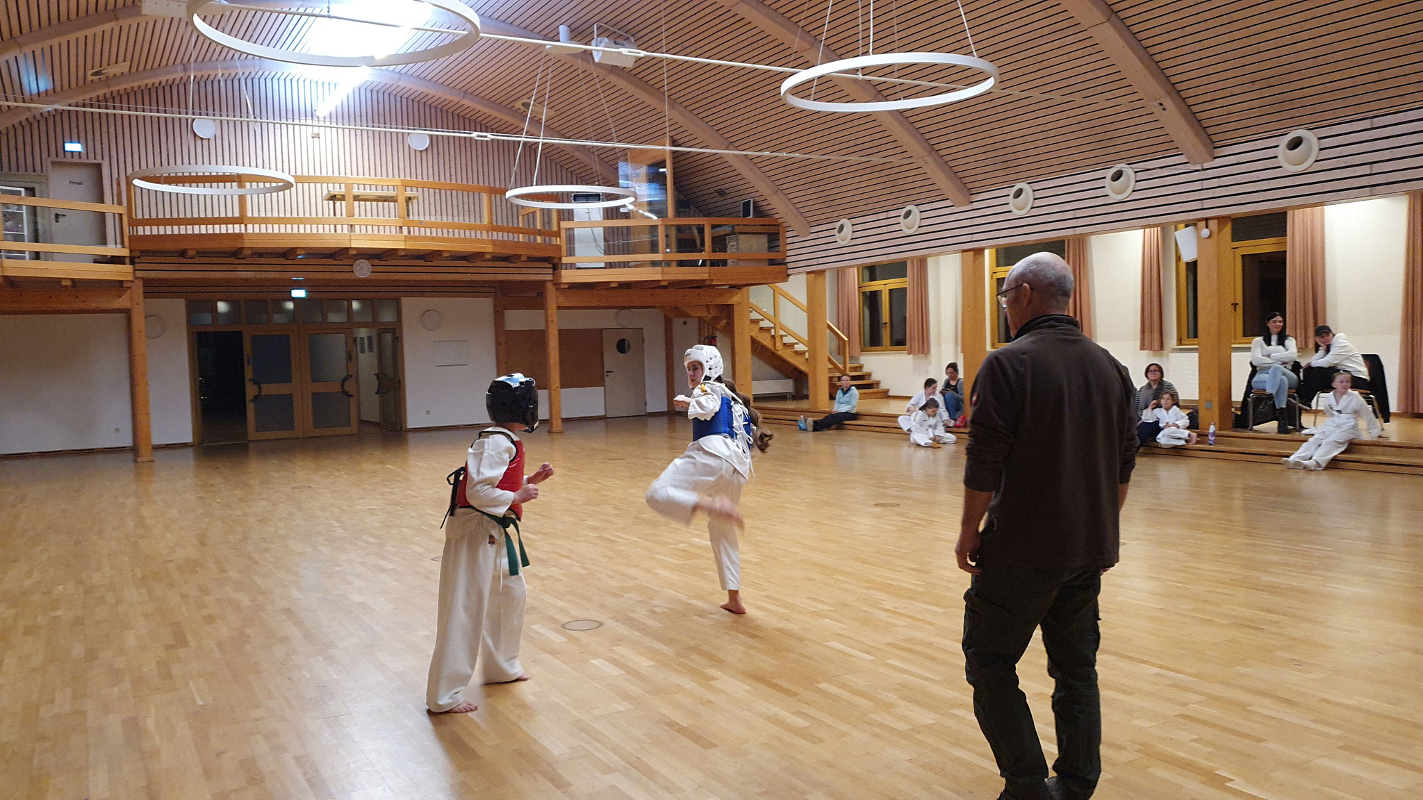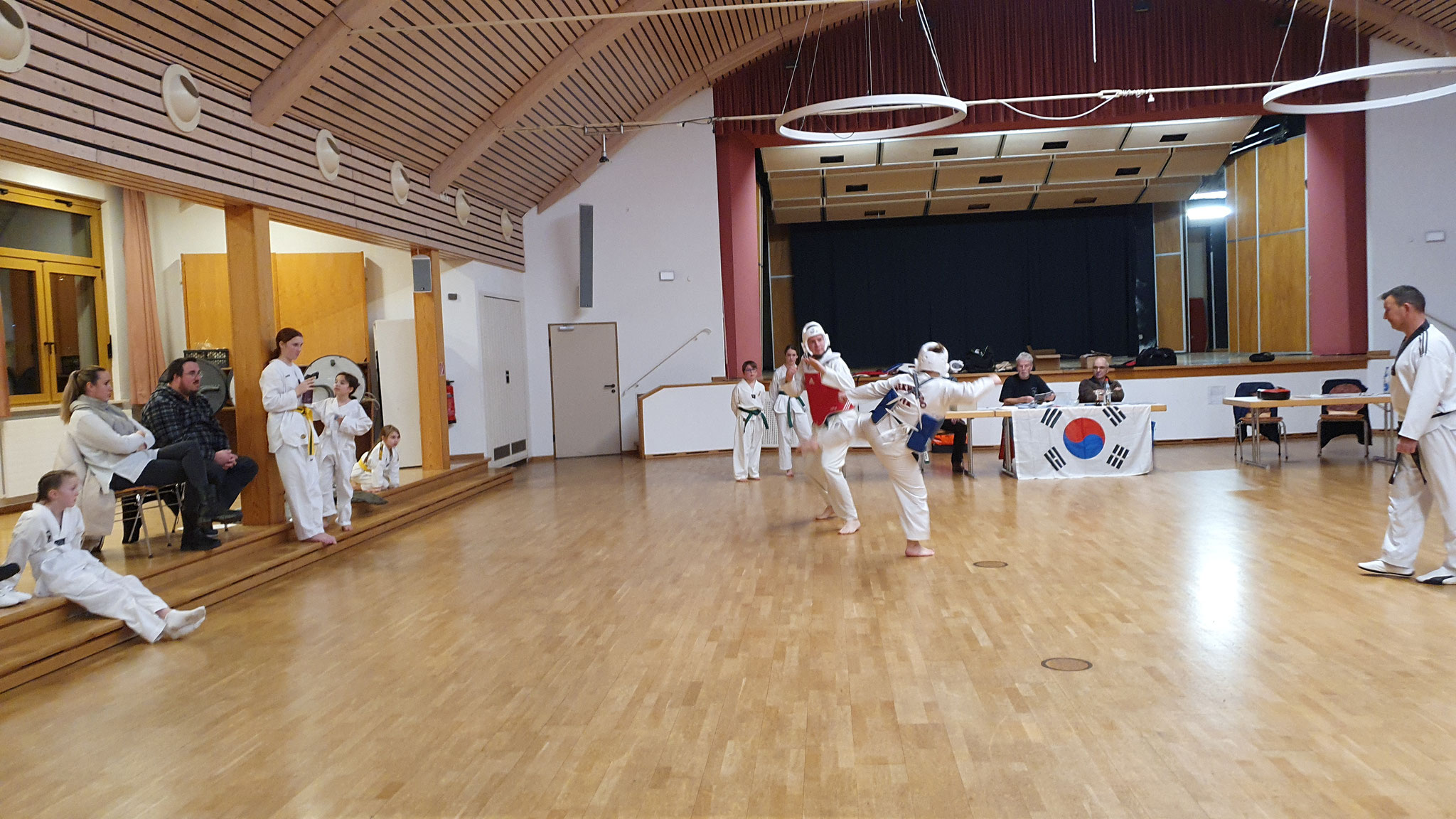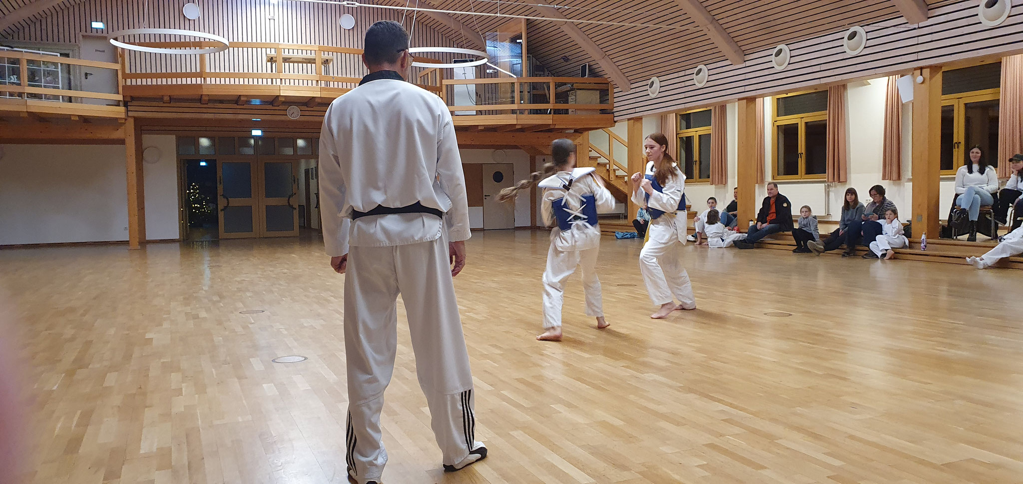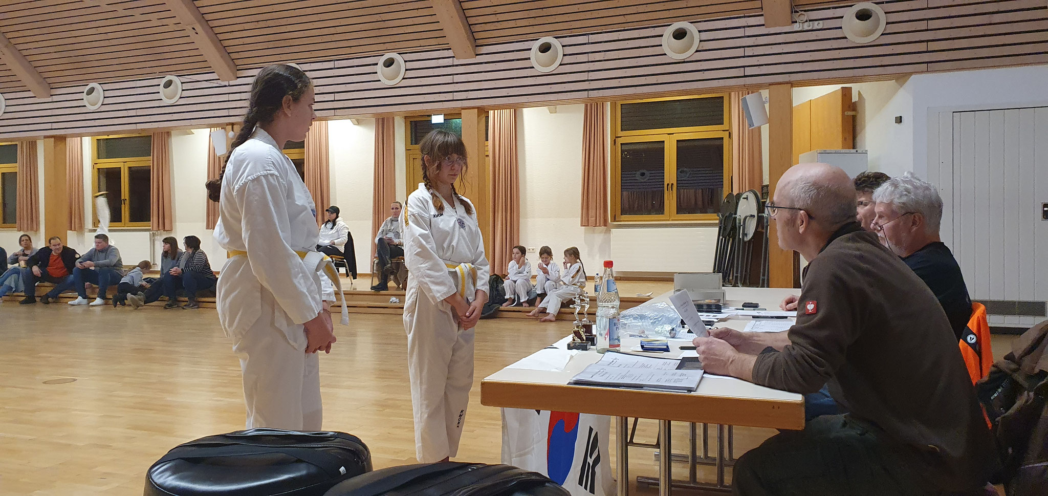 Die Prüflinge zum 9. Kup. durften als erste das Gelernte unter Beweis stellen und sich vor den zufriedenen Eltern präsentieren. Wir freuen uns, dass auch das Interesse bei den Eltern so groß ist und reichlich Zuschauer bei der Prüfung anwesend waren.