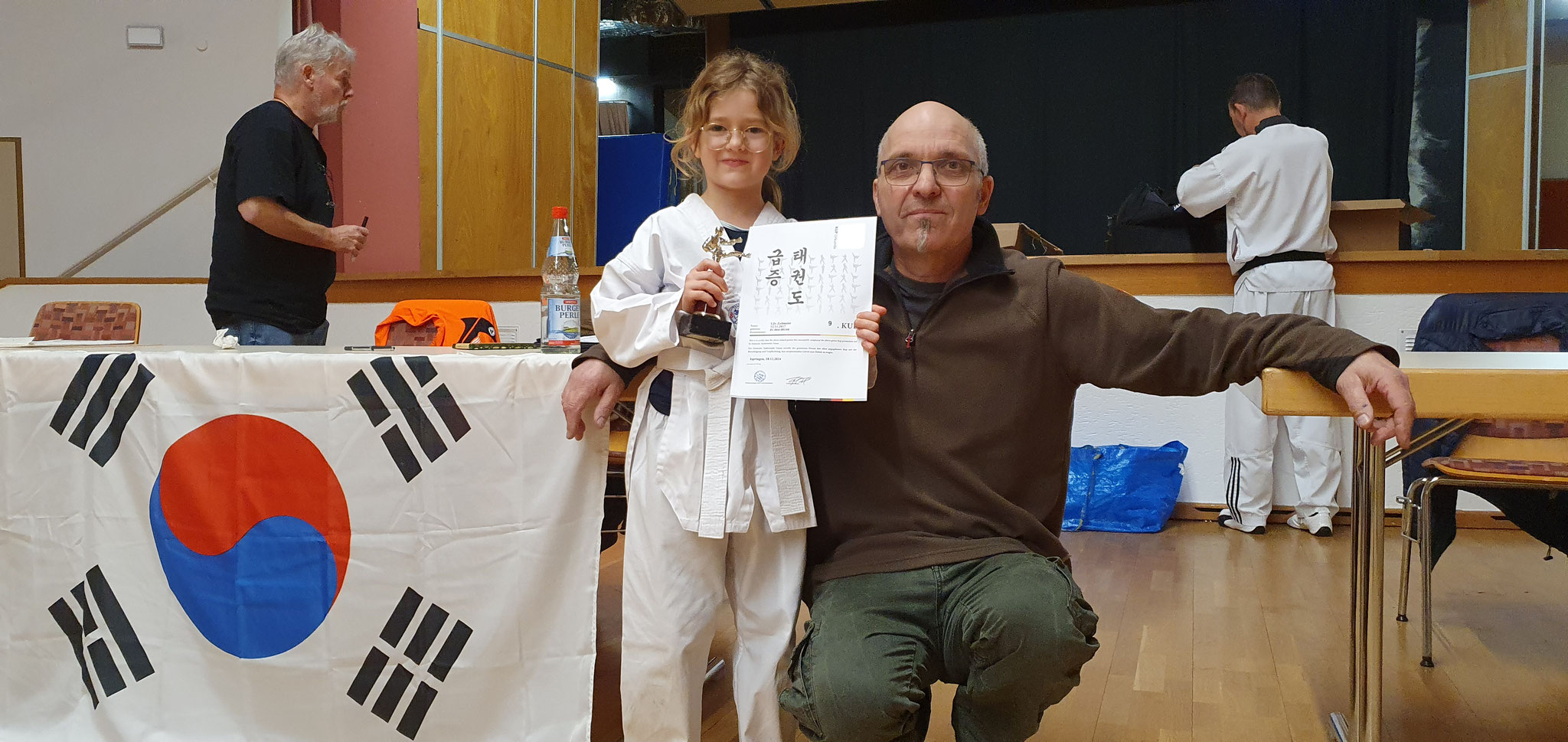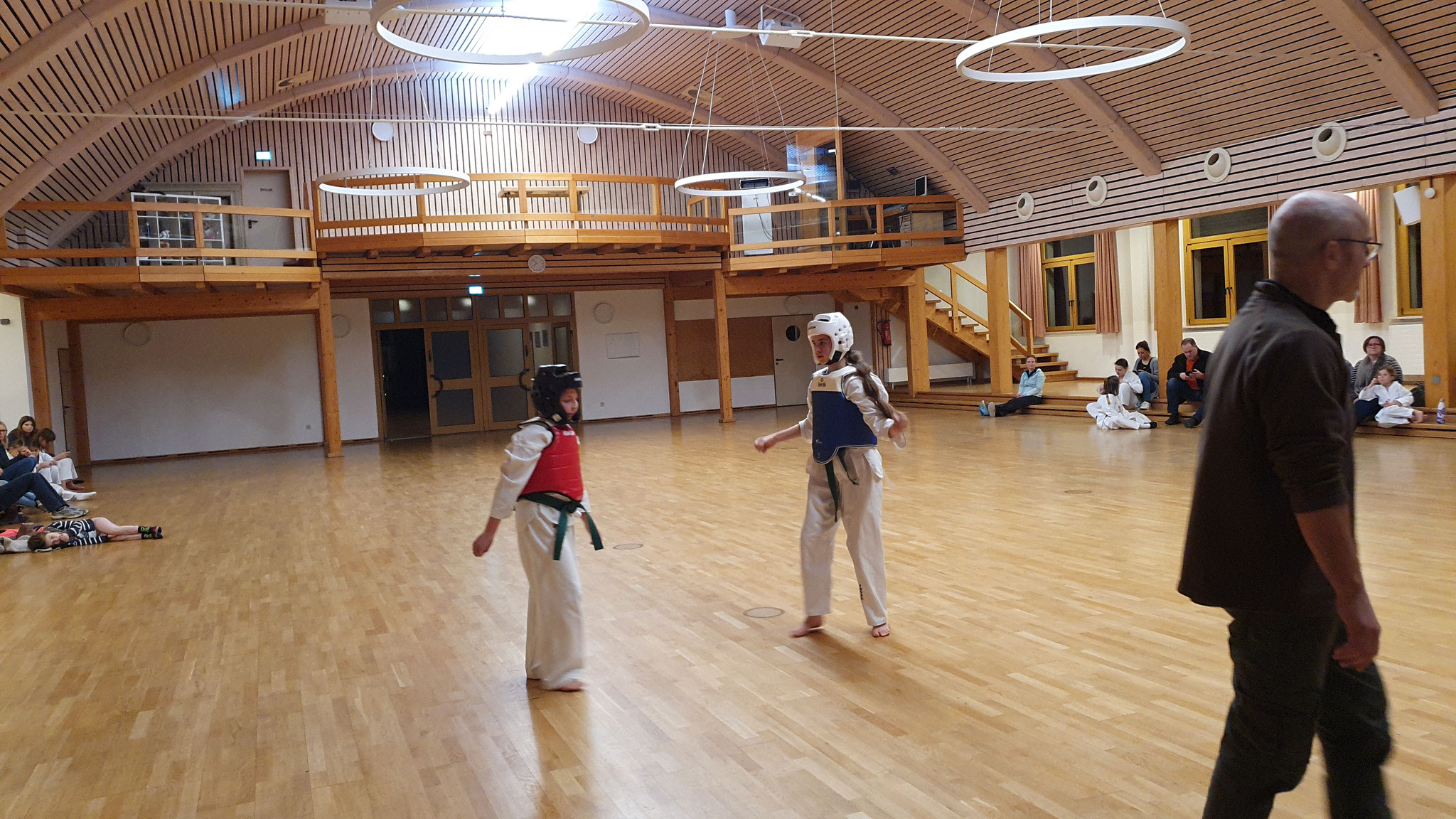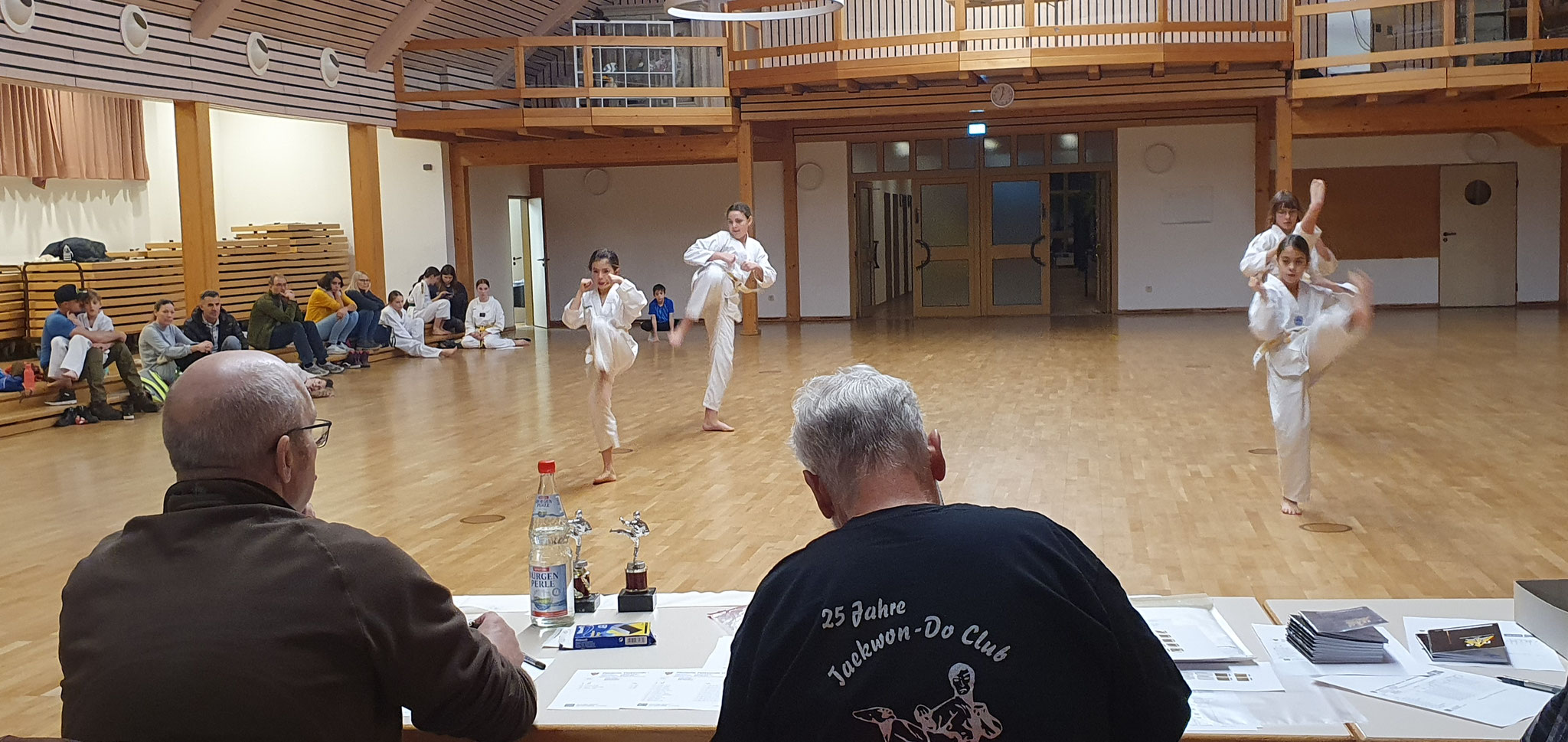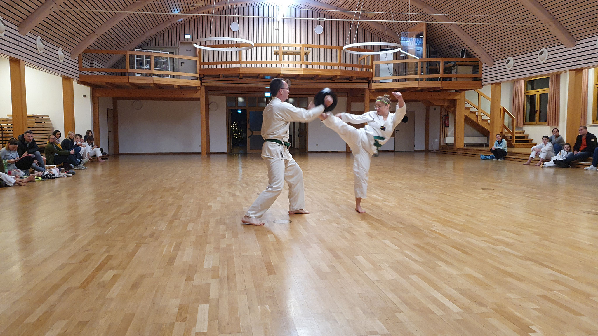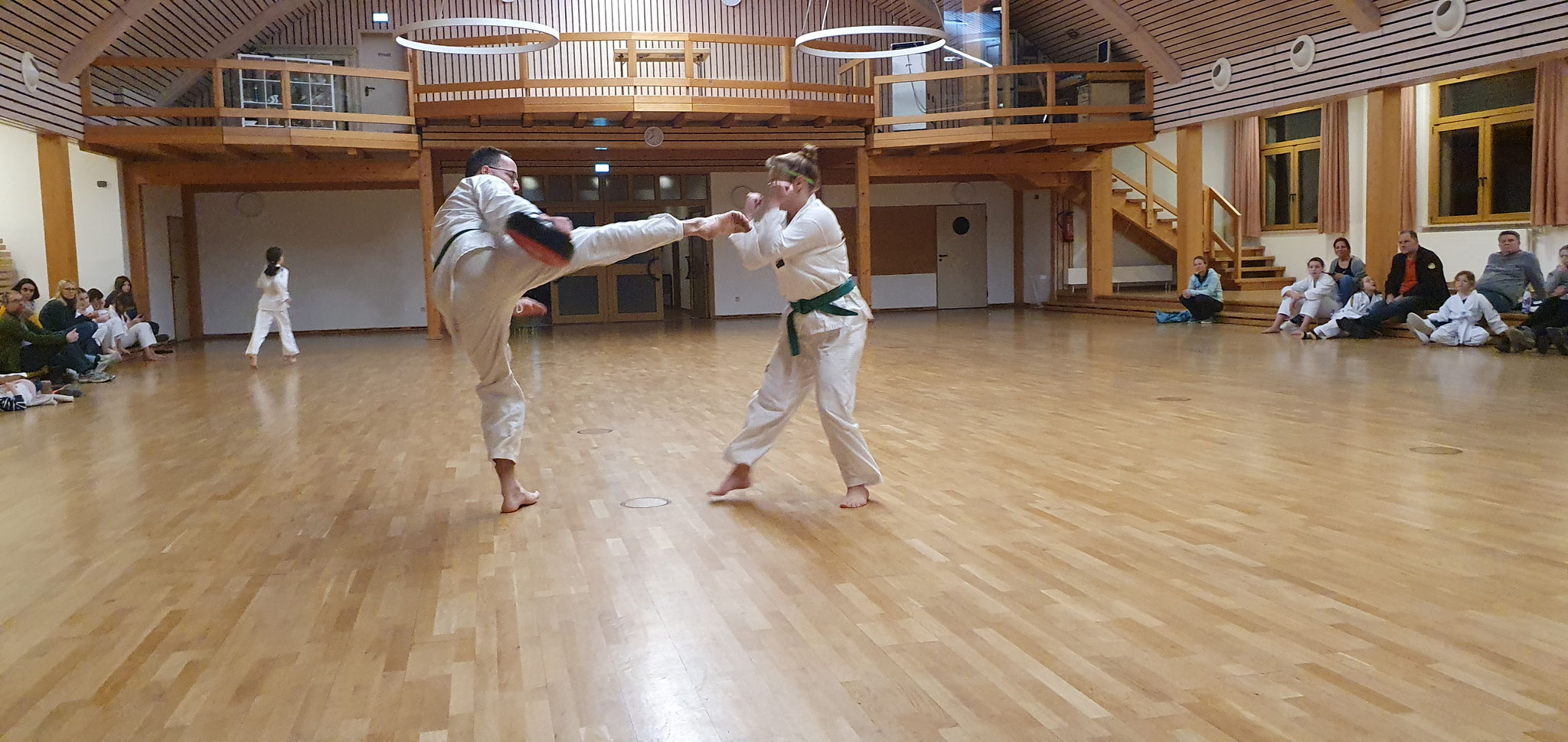 Die Prüflinge zum 9. Kup. durften als erste das Gelernte unter Beweis stellen und sich vor den zufriedenen Eltern präsentieren. Wir freuen uns, dass auch das Interesse bei den Eltern so groß ist und reichlich Zuschauer bei der Prüfung anwesend waren.